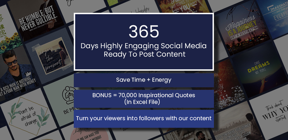 Social Media 365 Days Content + 1500+ Business Motivation + 900 Plus Inspirational Typographic + 795 Instagram Posts +100 Motivational Quotes + GIFT