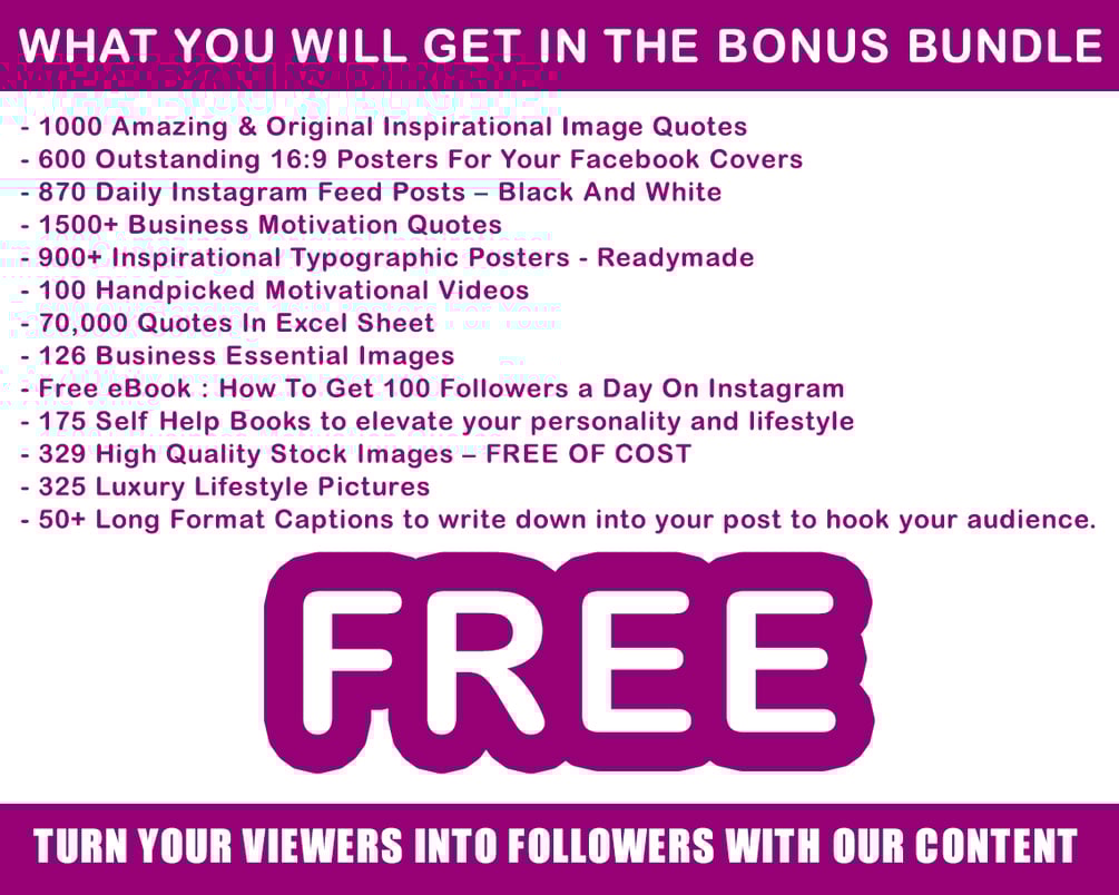 Imagine, you have a daily content idea specially planned for you and you have a content to post just READY to be posted. In Our Social Media Content Calendar & 1000+ Motivational Images/Videos to Get Tons of Engagement, we have compiled the most engaging Social media posts & redesigned it for you.