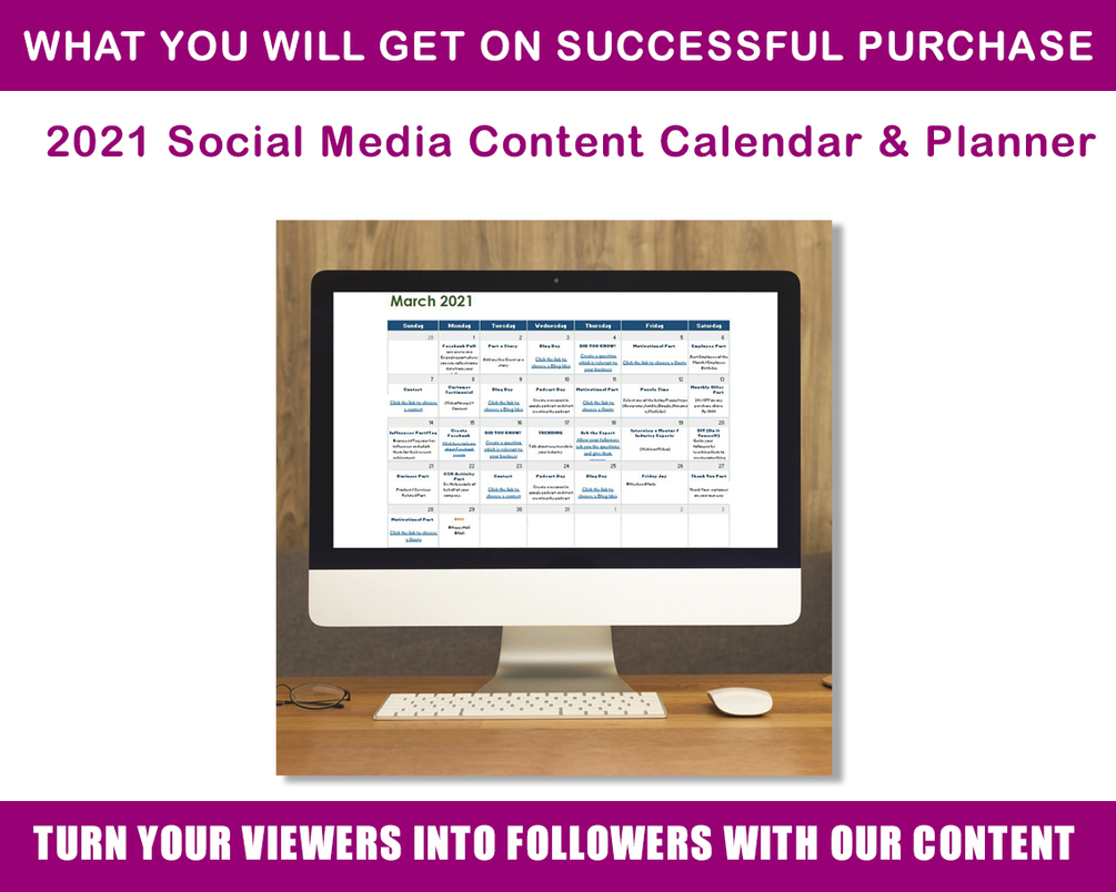 To grow your audience faster on Social Media, Consistency is the key. These 365 Social Media Content Calendar with Post Prompts and Content ideas planned out and done for you will help you out to be consistent in posting highly influential posts.