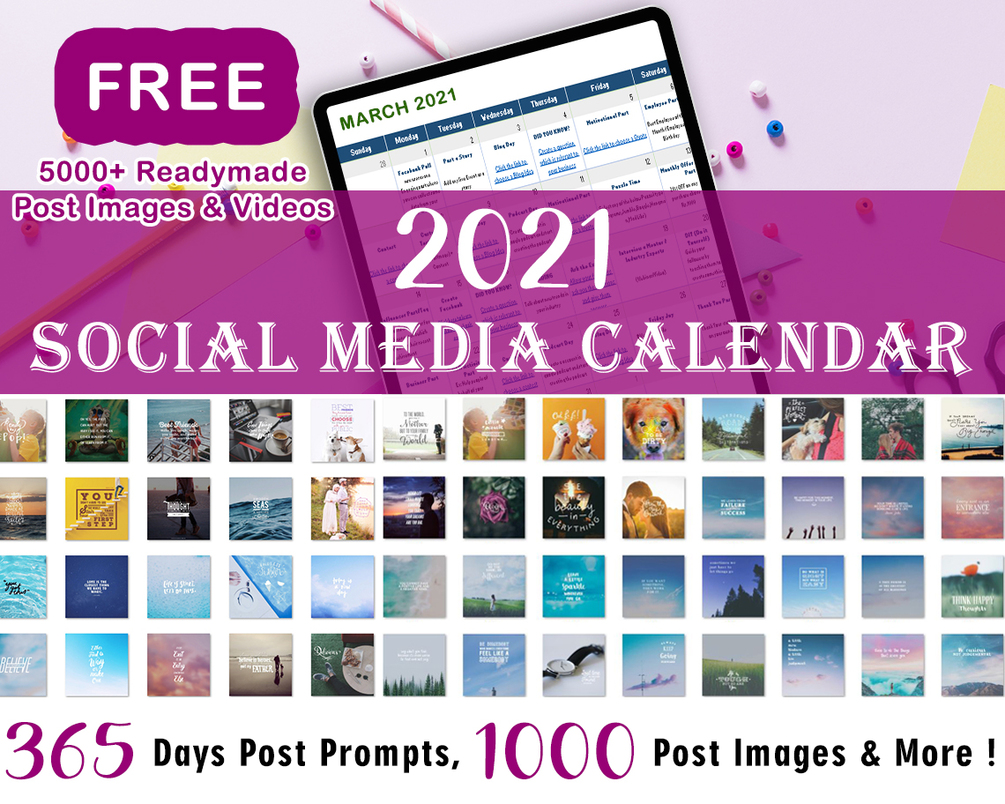 365 Days 2021 Social Media Post Content Calendar With 5000+ Inspirational & Business Image Quotes and Videos For Facebook,Twitter,Instagram